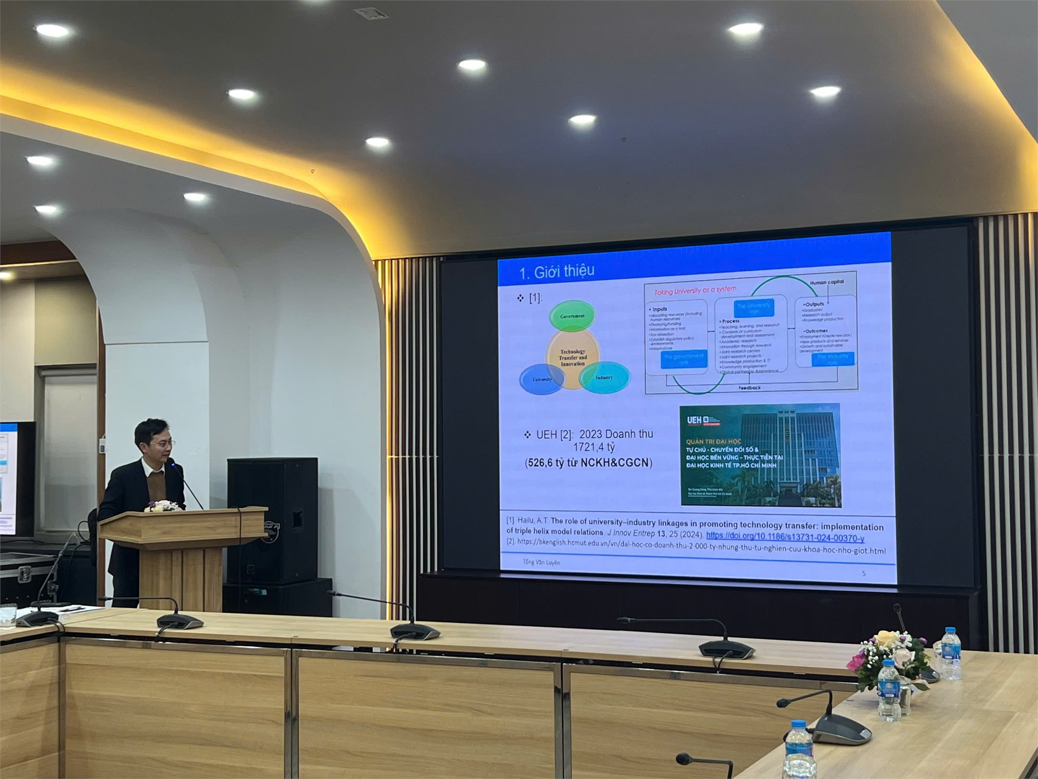 2. Giải pháp đẩy mạnh nghiên cứu khoa học, đổi mới sáng tạo gắn với nhu cầu xã hội tại Trường Điện – Điện tử (do đồng chí Tống Văn Luyên trình bày).