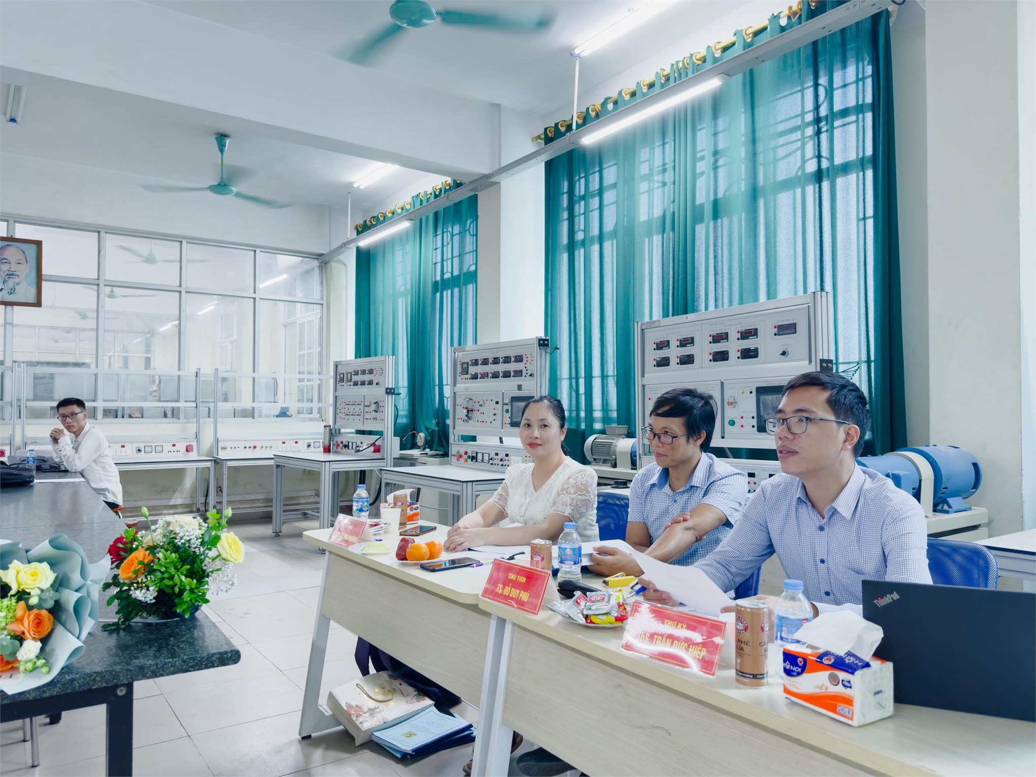 Tham gia chấm đồ án là các giảng viên giàu kinh nghiệm của Trường, trong vai trò hội đồng chuyên môn. Quá trình bảo vệ diễn ra nghiêm túc và khách quan. Bên cạnh việc lắng nghe trình bày của sinh viên, các thành viên hội đồng còn đặt ra nhiều câu hỏi và gợi ý nhằm mở rộng tư duy kỹ thuật, đánh giá chiều sâu kiến thức và khả năng làm chủ đề tài của người học.